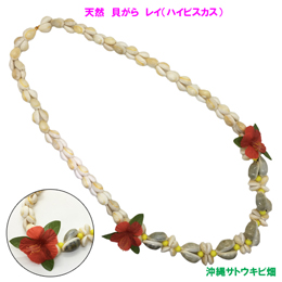天然の貝殻、タカラガイで作られた南国風のハワイアンレイ